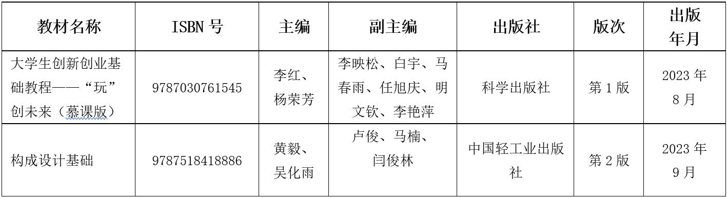 我校教师编写的《大学生创新创业基础教程——“玩”创未来》(慕课版)与《构成设计基础》教材已入选首批“十四五”职业教育国家规划教材名单。根据《云南省教育厅关于组织开展“十四五”职业教育省级规划教材建设工作的通知》中“我省入选首批‘十四五’职业教育国家规划教材名单经复核后列入省级规划目录”的要求,现予以公示。