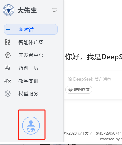 访问https://chat.zju.edu.cn,点击左下角登录按钮,
