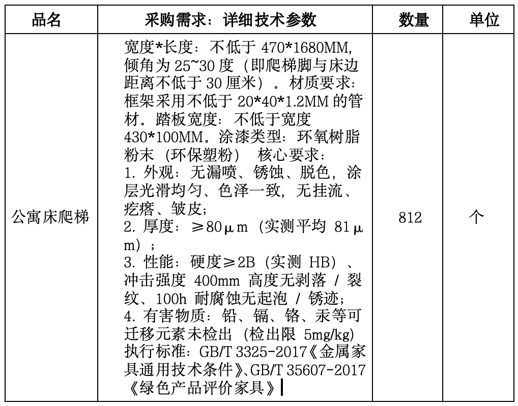 项目名称:学生公寓公寓床爬梯(HQXM202510-0003)