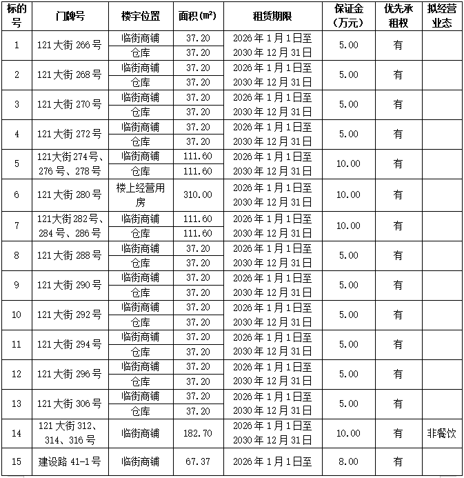 (一)本次竞价招租,有优先权的原商铺承租人同等条件下优先;