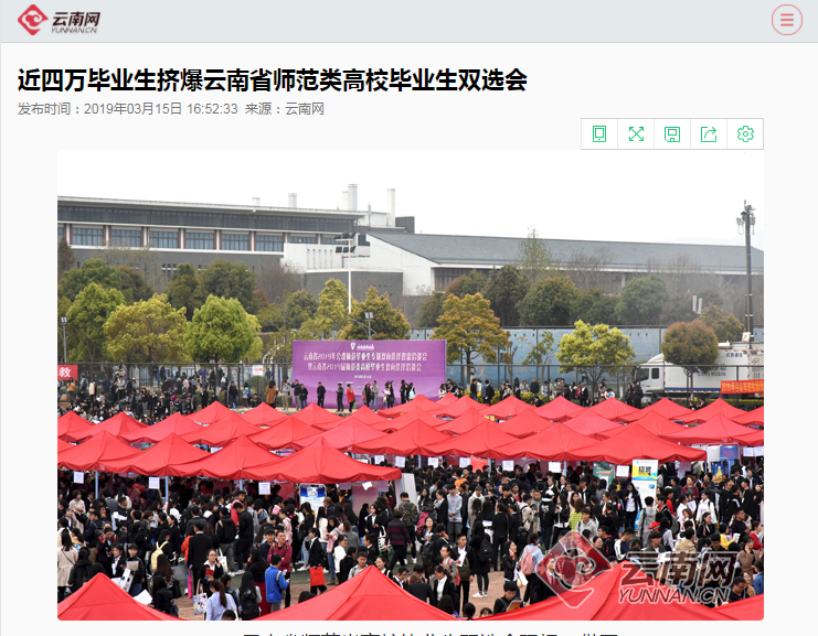 上一条:云南日报 219-03-14 我省师范类毕业生双向选择洽谈会举行 下一条:云报 2019-03-14 云南省举行师范类高校毕业生双向选择洽谈会