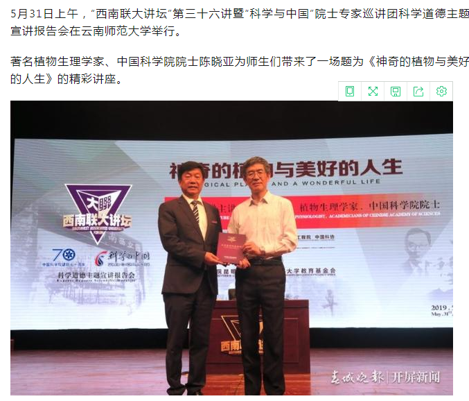 上一条:云南网 2019-05-31 陈晓亚院士做客西南联大讲坛 分享“神奇的植物与美好的人生” 下一条:新华网 2019-05-21 西南联大文创产品亮相第十五届深圳文博会