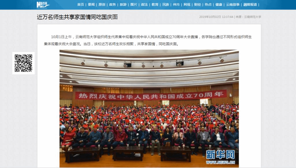 上一条:春城晚报 2019-10-02 我们的节日·国庆丨为伟大祖国庆生,共吃祖国生日长寿面 下一条:云南网 2019-10-02 观盛会倍感自豪 云师大近万名师生“唆”长寿面祝福新中国