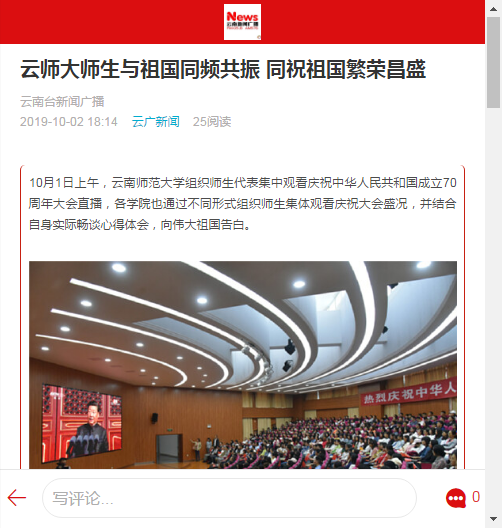 上一条:中国新闻网 2019-10-02 云师大师生共吃长寿面为祖国庆生 下一条:云南信息报 2019-10-02 云南师大万名师生吃长寿面