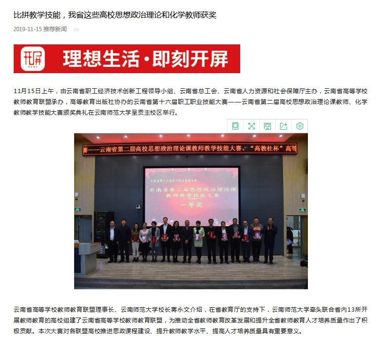 上一条:云南日报 2019-11-15 云南省第二届高校思想政治理论课教师、化学教师教学技能大赛落幕 下一条:云南新闻广播 2019-11-15 云南省第二届思想政治理论课教师、化学教师教学技能大赛举行