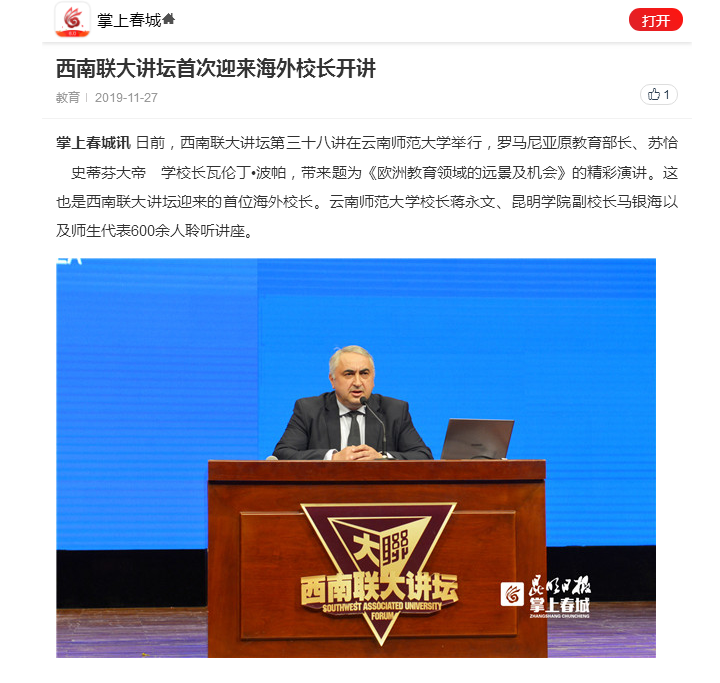 上一条:中国青年报 2019-11-28 罗马尼亚教育家瓦伦丁·波帕做客西南联大讲坛 下一条:昆明日报 2019-11-25 情系乌蒙!云南画家黄河山水画作品展在昆开展