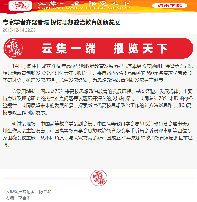 上一条:云南日报 2019-12-15 专家学者聚昆研讨高校思想政治工作 下一条:云南日报 2019-12-03 展示啦啦操魅力