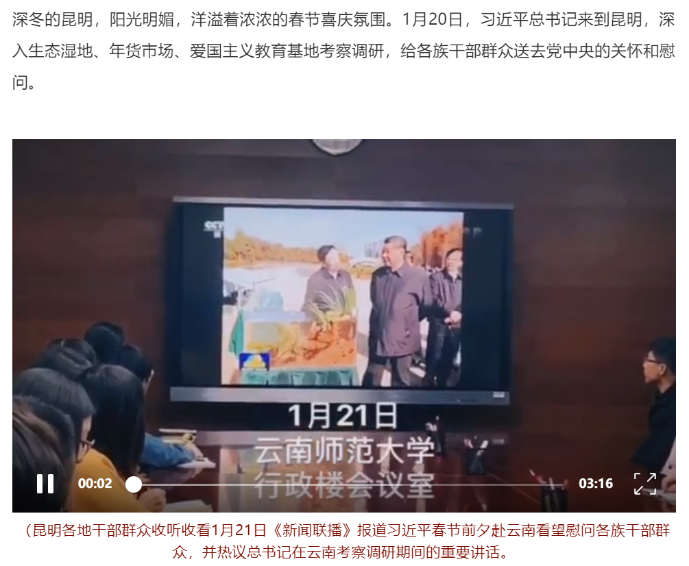 上一条:昆明日报 2020-01-22 努力培养和成为社会主义建设者和接班人 下一条:CCTV-1综合频道 2020-01-21 习近平春节前夕赴云南看望慰问各族干部群众 向全国各族人民致以美好的新春祝福 祝各族人民生活越来越好祝祖国欣欣向荣