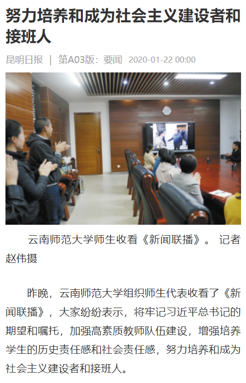 上一条:云南日报 2020-01-22 不辜负总书记对云南各族人民的深情厚意 下一条:昆报头条 2020-01-22 感动!总书记问了我们这些问题