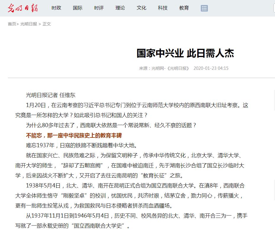 上一条:中国日报 2020-01-21 鉴往知来——跟着总书记学历史|西南联大教育救国 下一条:云南日报 2020-04-05 云师大昆明理工大举办网络双选会