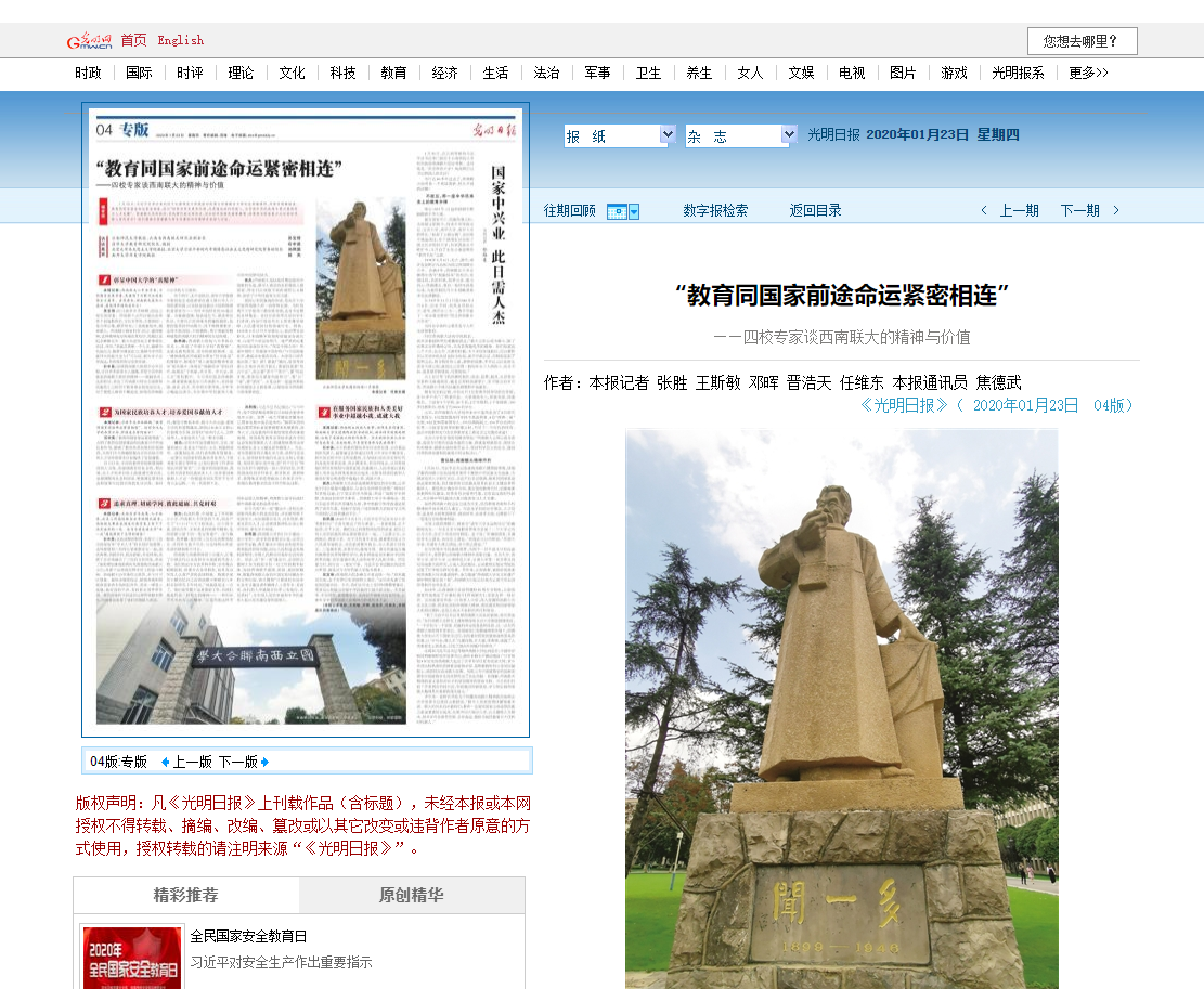 上一条:中新网 2020-02-06 “声”援武汉 | 云师stay with you! 下一条:中国日报 2020-01-21 鉴往知来——跟着总书记学历史|西南联大教育救国