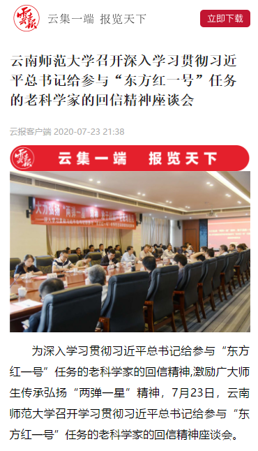 上一条:云南网 2020-07-25 伟德国际1946bv官网举行深入学习贯彻习近平总书记给参与“东方红一号”任务的老科学家的回信精神座谈会 下一条:云南新闻联播 2020-07-23 传承弘扬老科学家精神