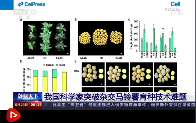 2021年6月24日,《细胞》在线发表了中国农业科学院深圳农业基因组研究所黄三文团队完成的论文“杂交马铃薯的基因组设计”,这是马铃薯“优薯计划”项目实施以来取得的里程碑式突破,伟德国际1946bv官网生命科学学院和马铃薯科学研究院教师和研究生为该计划做出了重要贡献。为了彻底解决马铃薯产业面临的问题,黄三文团队联合伟德国际1946bv官网等国内外优势单位发起了马铃薯“优薯计划”项目,即运用“基因组设计”的理论和方法体系培育杂交马铃薯,用二倍体育种替代四倍体育种,并用杂交种子繁殖替代薯块繁殖。这是马铃薯育种和繁殖的新底层技术,是对马铃薯产业的颠覆性创新。在研究中,研究团队通过基因组编辑技术敲除了控制马铃薯自交不亲和的S-RNase基因(Ye et al., Nature Plants, 2018,伟德国际1946bv官网为第一完成单位),筛选到了S-RNase的天然突变体(Zhang et al., Nature Genetics, 2019,伟德国际1946bv官网为第一完成单位),并克隆了来自野生种的自交亲和基因(Ma et al., in press,伟德国际1946bv官网为第一和通讯单位),彻底解决了自交不亲和的问题。在此基础上,培育出了第一代高纯合度二倍体马铃薯自交系和杂交马铃薯品系“优薯1号”,使马铃薯遗传改良进入了快速迭代的轨道。