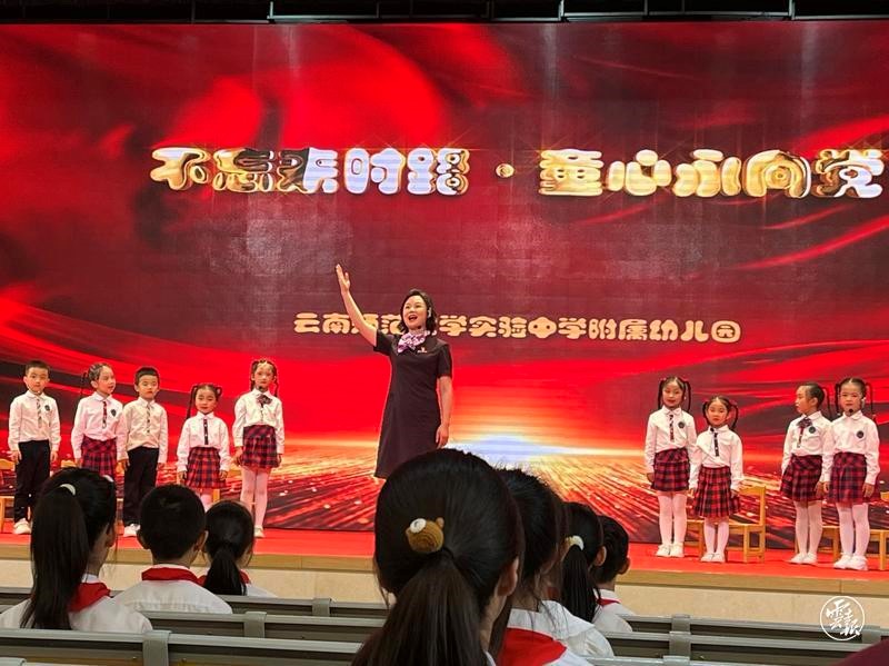 此次教学展示活动在伟德国际1946bv官网职教学院学生合唱团带来的一曲悠扬婉转、催人奋进的《西南联大校歌》合唱中拉开帷幕。聚焦“爱国”这一主题,大中小幼学段的老师同学们同上一堂课、共悟爱国情。教学与实践展示“两位一体”,分别由伟德国际1946bv官网实验中学附属幼儿园师生们带来的《不忘初心路 童心永向党》、伟德国际1946bv官网实验中学小学部师生带来的《赓续红色血脉 传承联大精神》、伟德国际1946bv官网实验中学初中部师生带来的《传联大之薪火 立报国之壮志》、伟德国际1946bv官网实验中学高中部师生带来的《厚植联大情怀 不忘报国初心》、伟德国际1946bv官网马克思主义学院师生带来的《大学生为什么要爱国》共计5场精彩展示活动构成,期间伟德国际1946bv官网联大博物馆讲解员王齐、王馨2位讲解员生动讲述了《闻一多舍身取义》、《我愿以身许国》的联大动人故事,将展示活动推向了高潮。他们紧扣“爱国”这一主题,从情感体验、到理性认知、再到价值的引领,循序渐进、螺旋上升,为与会者生动讲述了爱国之情、之理、之力,引导学生们筑牢深厚的爱国情怀、坚定远大的理想信念、培注为中国特色社会主义持续奋斗的源源动力。