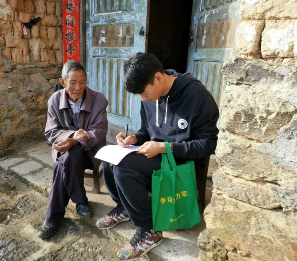 梁河县平山乡云师大驻上河东村工作队员开展入户调查工作。