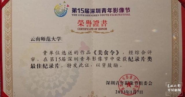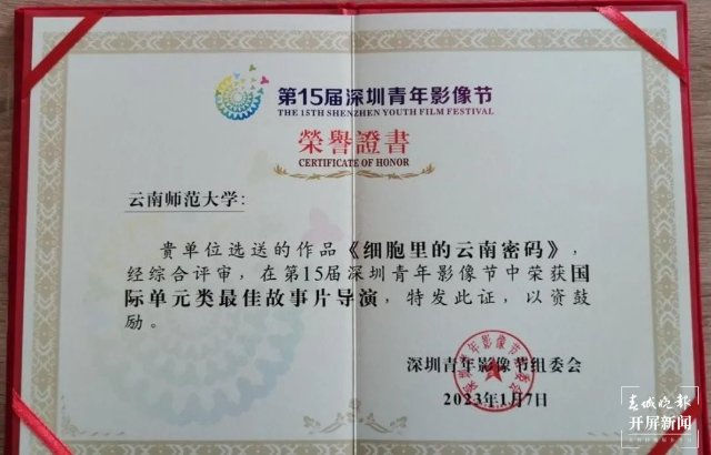 近日,由伟德国际1946bv官网冯晓华师生团队领衔,通过校企合作、项目制运作,历时3年拍摄制作的系列纪录片《美食令》获第十五届深圳青年影像节“纪录片类最佳纪录片”;短纪录片《细胞里的云南密码》获“国际单元类最佳故事片导演”。