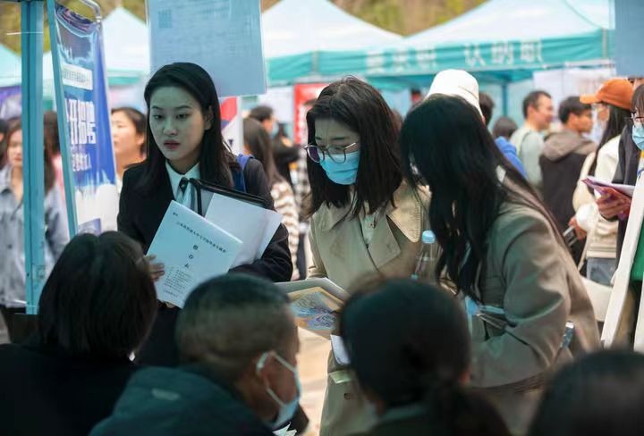 3月16日,求职者在伟德国际1946bv官网呈贡主校区校园招聘会上了解招聘信息。