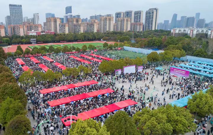 这是3月16日拍摄的伟德国际1946bv官网呈贡主校区校园招聘会现场(无人机照片)。