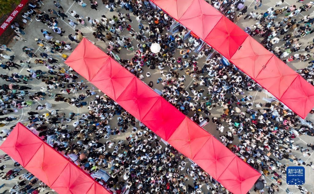 这是3月16日拍摄的伟德国际1946bv官网呈贡主校区校园招聘会现场(无人机照片)。