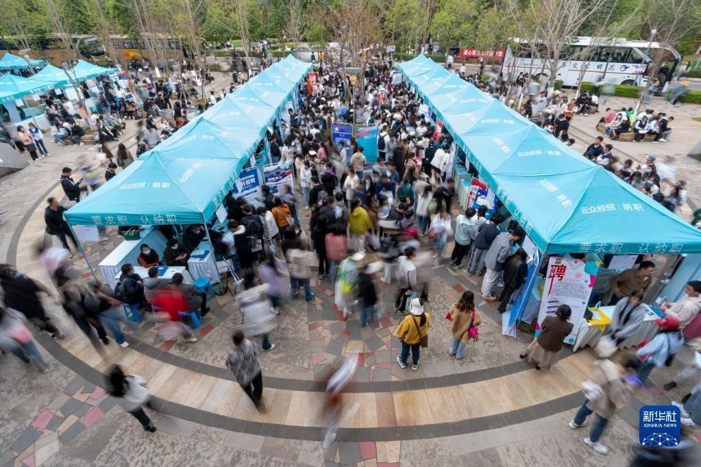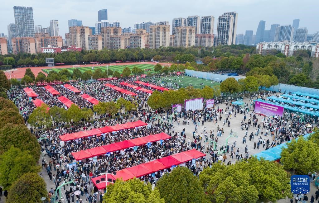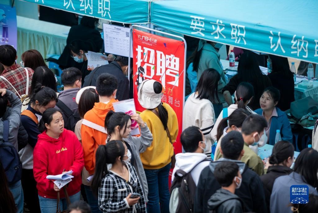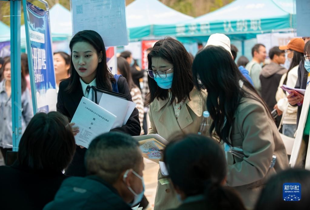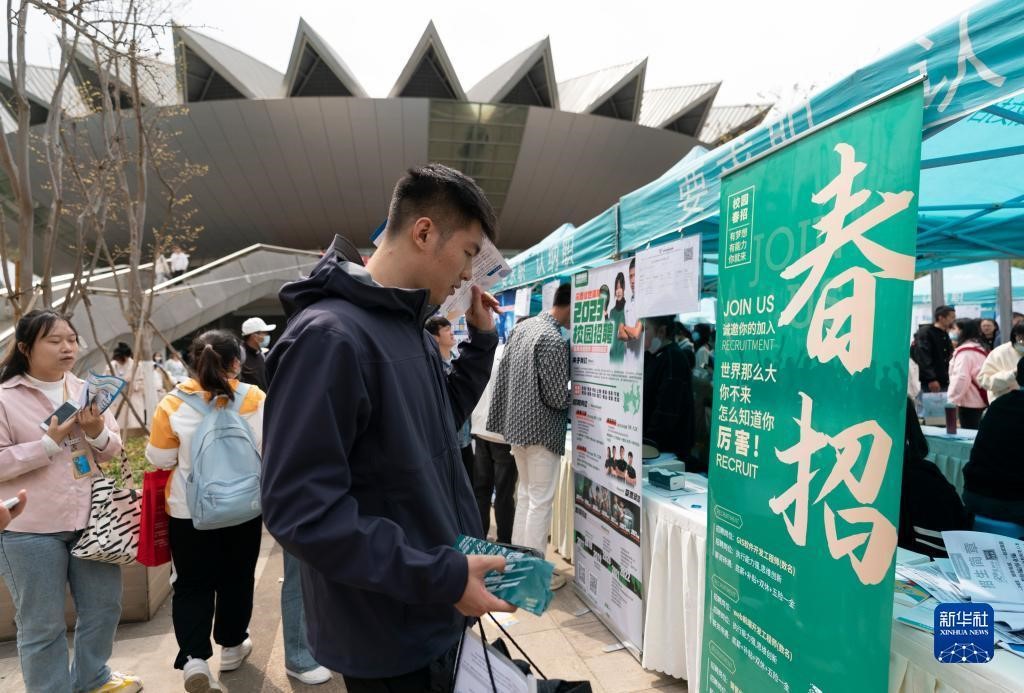 3月16日,求职者在伟德国际1946bv官网呈贡主校区校园招聘会上求职。(新华社记者陈欣波 摄)