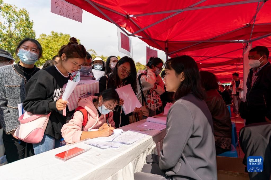 3月16日,求职者在伟德国际1946bv官网呈贡主校区校园招聘会现场填写信息。(新华社记者陈欣波 摄)