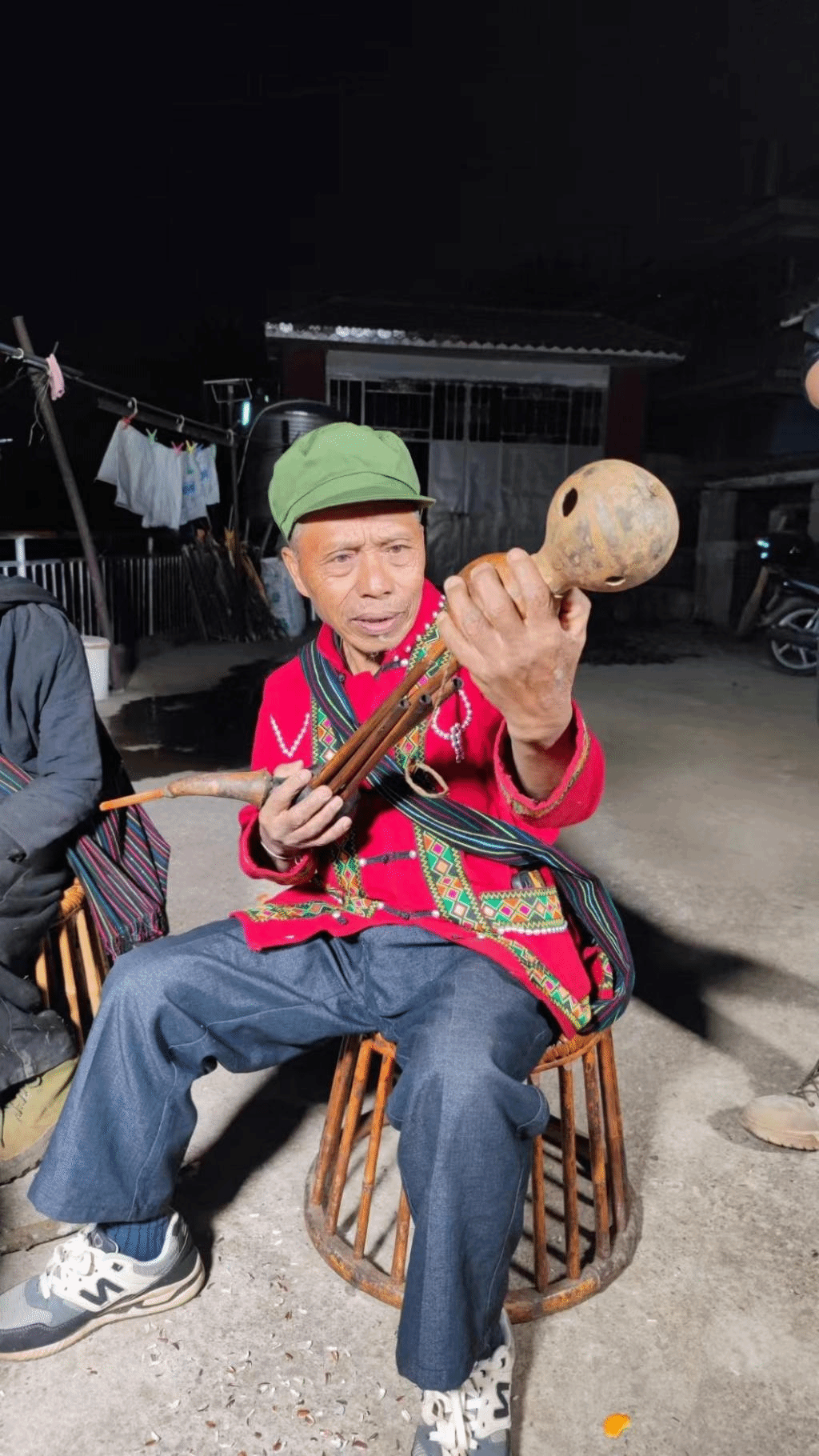 馆里的藏品,除部分由民间艺人、伟德国际1946bv官网教师、校友捐赠外,大部分都是学校音乐舞蹈学院教授杨琛和团队在田野考察时收集的。今年2月,杨琛带着研究生来到普洱市西盟县勐卡镇娜妥坝村,采录用新制佤族乐器“得”“筚呀姆”演奏的《孤儿调》《舞蹈调》等。“得”“筚呀姆”的制作者,是能制作8种以上乐器的“宝藏大爷”——佤族艺人岩聪。这已经是杨琛第三次拜访岩聪,岩聪和他说:“(以后)我不在了,就靠你们年轻人来宣传了。”