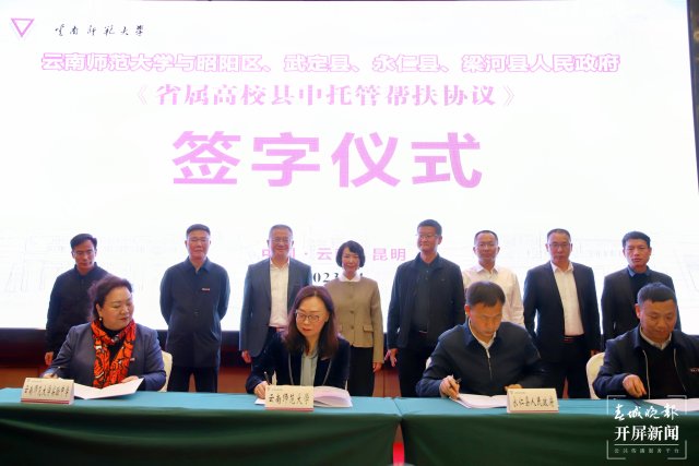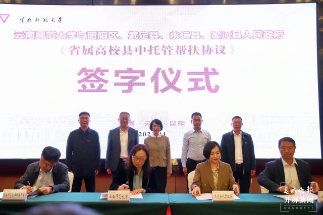 本次签约进一步落实云南师大与昭阳区人民政府、武定县人民政府、永仁县人民政府和梁河县人民政府签订的《省属高校县中托管帮扶框架协议》,明确了县中托管帮扶形式,各方权利、责任和义务,以及地方政府财政保障措施等具体内容。
