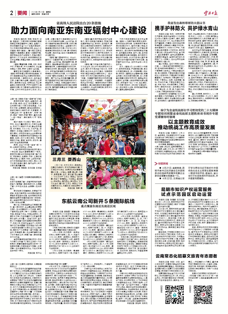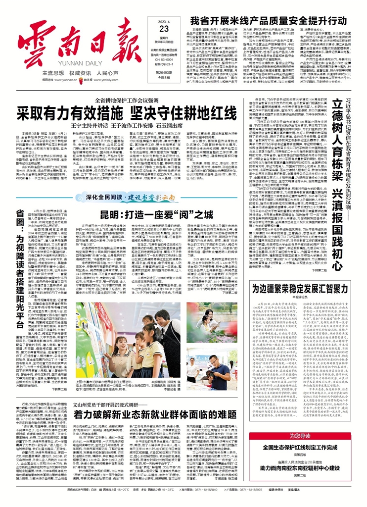 “习近平总书记在云南大学建校100周年之际发来贺信,不仅对云南大学百年成就作出充分肯定,更体现了对云南教育事业发展的高度重视和亲切关怀,为我们在新时代新征程推动全省教育事业高质量发展,办好人民满意的教育指明了前进方向、提供了根本遵循,让我们深受鼓舞、备感振奋。”省教育厅厅长、省委教育工委副书记王云霏表示,要认真学习贯彻习近平总书记重要贺信精神,牢记殷殷嘱托,一如既往团结带领全省教育系统以习近平新时代中国特色社会主义思想为指引,对照党的二十大为推动教育改革发展指明的方向,对照省委、省政府提出的奋进西部先进行列的目标,对照全省各族群众对公平而有质量教育的期盼,把学习成效转化为推动教育高质量发展的行动和实效,全面贯彻党的教育方针,牢记为党育人、为国育才的初心和使命,扎根云岭大地,书写教育华章,落实立德树人根本任务,持续加强铸牢中华民族共同体意识教育,全面提升各级各类学校办学水平,全面提高各层次人才培养质量,为把云南建设成为我国民族团结进步示范区、生态文明建设排头兵、面向南亚东南亚辐射中心作出新的更大贡献。