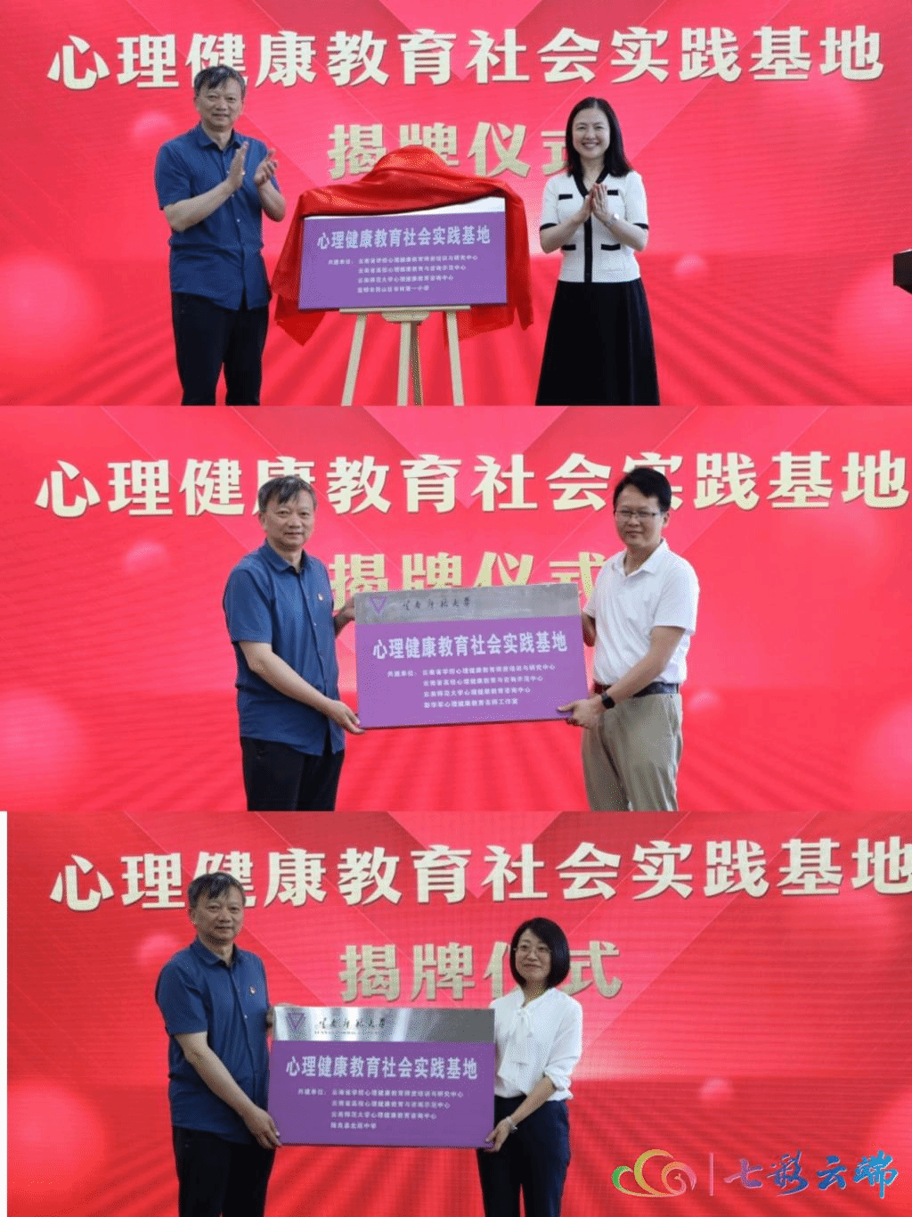 会上伟德国际1946bv官网心理健康教育咨询中心与昆明市西山区书林第一小学、彭华军心理健康教育名师工作室、陆良县北辰中学进行了共建心理健康教育社会实践基地的挂牌,共同开辟心理健康教育新局面,携手共建咨询服务“试验田”。