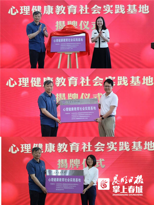 研讨会上,昆明市西山区书林一小、昆明市第三十中学、曲靖市陆良县云南北辰高级中学心理健康教育社会实践基地揭牌。