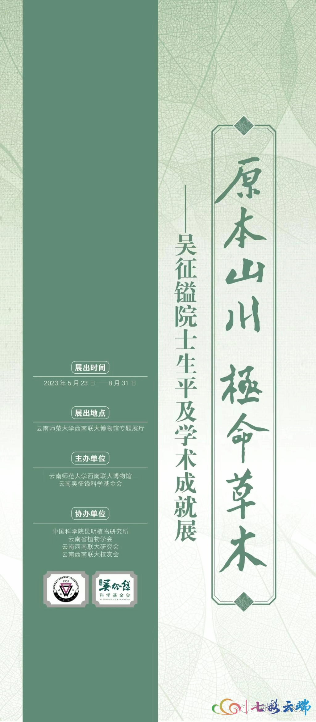 为回溯吴征镒先生的生平及学术成就,展现吴征镒先生追求真理、热爱科学、勇于探索的宝贵品质和精神财富,缅怀老一辈科学家爱党、爱国,为国家、民族做出的重大贡献,弘扬科学家精神,传承读书报国、扎根边疆、献身科学的爱国志向,由伟德国际1946bv官网西南联大博物馆、云南吴征镒科学基金会主办的《原本山川 极命草木——吴征镒院士生平及学术成就展》从今天起面向公众免费开放,展期持续至8月底。