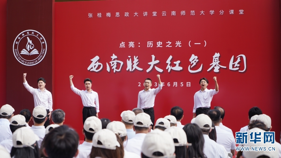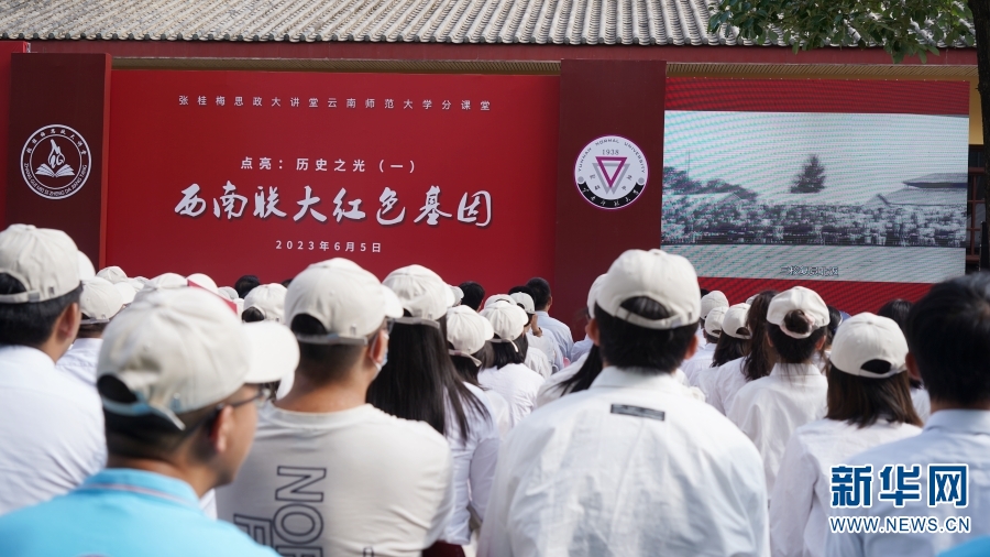 新华网昆明6月6日电(康静 刘云 刘睿)5日上午,张桂梅思政大讲堂伟德国际1946bv官网分课堂第一讲以“点亮历史之光——西南联大红色基因”为主题,在西南联大博物馆前开讲。