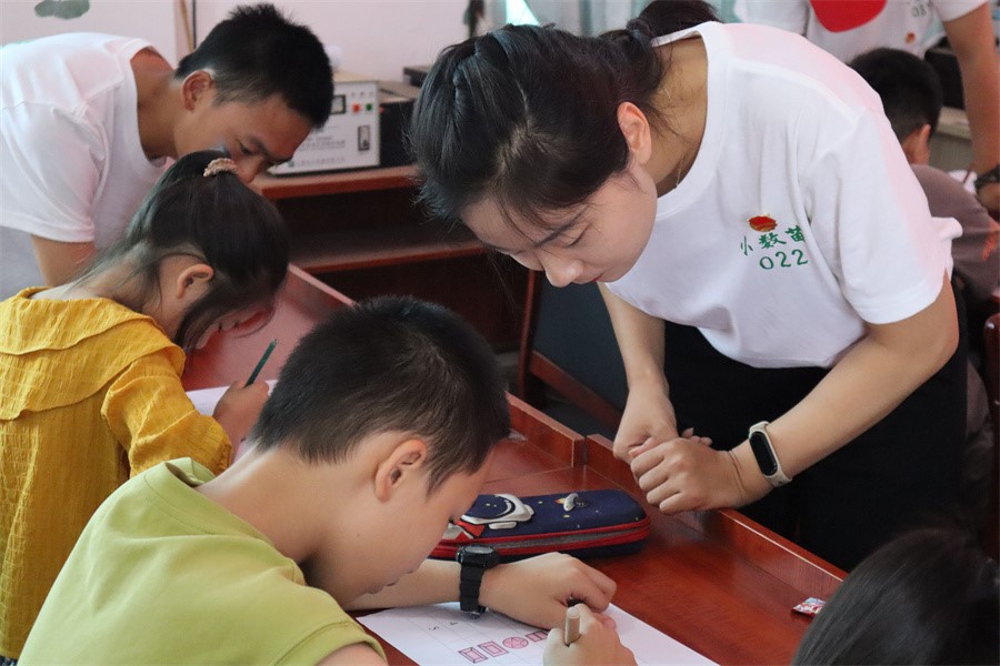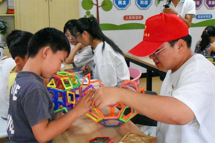 志愿者带领小朋友们在游戏的过程中感受数学的奇妙与乐趣(7月19日摄)伟德国际1946bv官网 供图
