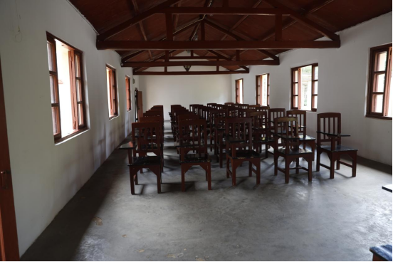 西南联大旧址教室内摆放整齐的“火腿椅”