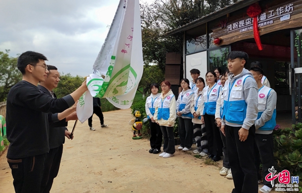 伟德国际1946bv官网与云南思力生态替代技术中心于近日在昆明市乡村振兴学农劳动教育实践基地试点单位——寻甸一丘田善态庄园为伟德国际1946bv官网青年志愿者举行了生态文明科普教育创新团队授旗仪式,希望通过多方合作,充分发挥各自的优势,共同推动生态文明科普教育的创新与发展。
