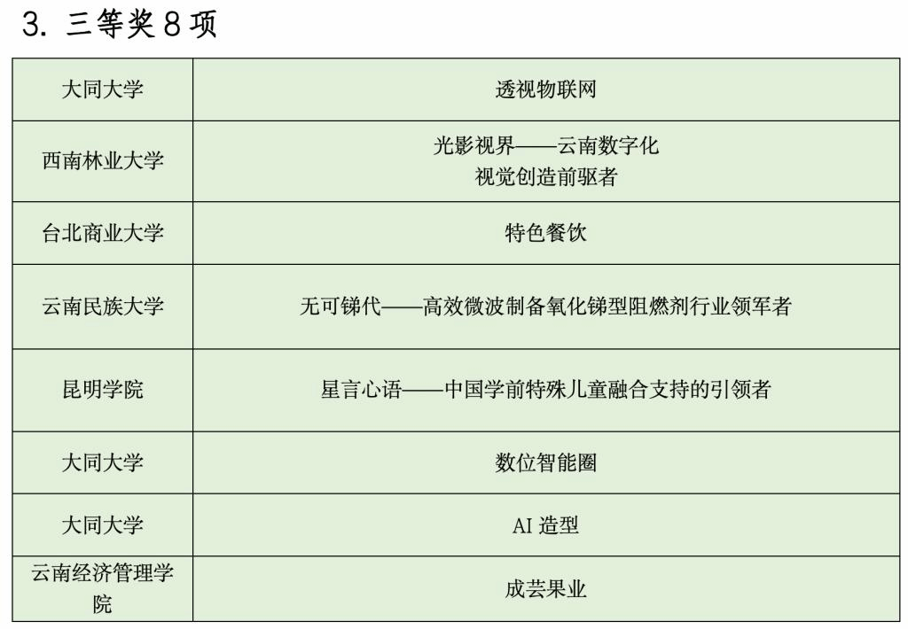 今年的邀请赛是历年来人数最多、规模最大的一次。来自伟德国际1946bv官网、铭传大学、辅仁大学、云南大学、昆明理工大学、慈济科技大学等20所云台高校学生组成的25支队伍,聚焦教育、文化、信息、现代物流、高原特色现代农业、养殖业食品与消费品制造等重点领域展开激烈角逐,评选出一等奖2项、二等奖6项、三等奖8项、优秀奖9项,以及最佳人气、最佳创意、优秀组织、优秀指导教师等奖项。