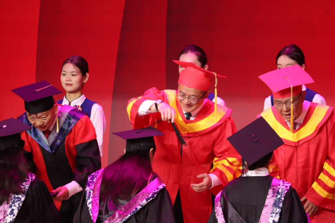 图为2023届毕业生毕业典礼校领导为毕业生代表拨穗。图源:伟德国际1946bv官网