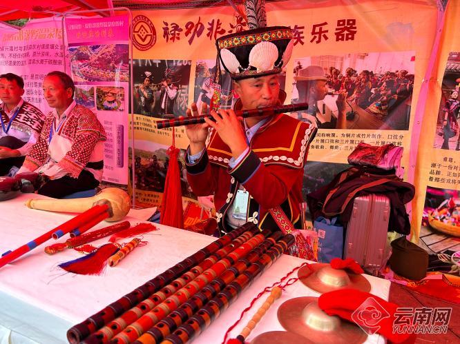 轻快的喜笛声和着铿锵有力的舞步,走进非遗展示区,禄劝县蹀脚舞传承人张明学身着一身民族服饰跳起禄劝民族舞曲,吸引了大批同学围观。“这是喜笛,这是葫芦笙,这些都是禄劝特色民族乐器……”在舞蹈间隙,张明学耐心介绍起禄劝民族文化,“我们希望让更多年轻人认识禄劝、了解禄劝,感受禄劝民族文化魅力。”张明学说。
