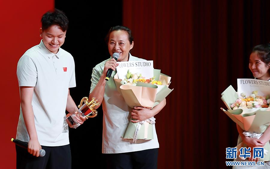 欧阳宇华(中)正在分享执教故事(6月14日摄)。新华网 徐华陵 摄