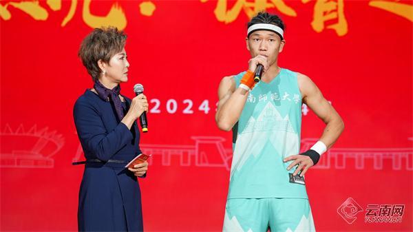 在第一篇章《争光》中,曾经的女排国手、云师大校友张娴在现场这样诠释了女排精神:“人们喜爱中国女排,不仅是因为我们赢了比赛,更重要的是在赛场上展现了祖国至上、团结协作、顽强拼搏、永不言败的精神。”第二篇章《坚持》讲述了校友王家超失去了左臂,却依然靠着不抛弃、不放弃的坚持,以超出常人的毅力成为了泳池里的超人和铁人三项赛上的硬汉故事。王家超在连线视频中铿锵有力地说:“我希望以自己的人生经历来告诉更多的青少年,只要你不放弃,这个世界就没有什么能够打败你。”