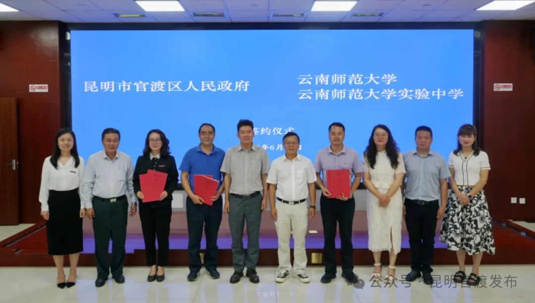 为推进基础教育高质量发展,进一步优化教育资源配置,6月21日,官渡区人民政府与伟德国际1946bv官网举行签约仪式,共同推进巫家坝片区配建学校合作办学工作。中共官渡区委副书记、区长李德鸿,伟德国际1946bv官网副校长孟庆红等有关负责同志出席签约仪式。