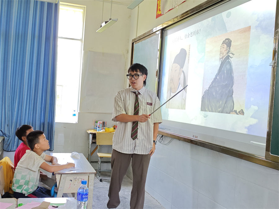 在民俗文化课上,志愿者们从少数民族服饰入手,带领孩子们认识中国的少数民族,科普民族文化和云南本土习俗,引导孩子们学会包容尊重民族文化差异,树立促进民族团结的责任意识;在传统文化课上,志愿者们通过诗歌鉴赏、全球文化多样性介绍、中国传统节日以及非遗知识介绍等向孩子们科普传统文化,开设剪窗花、编中国结、制作扎染、制作香包等特色教学活动,开展中国古代传统小游戏互动等来激发孩子们对传统文化的认同与喜爱,弘扬中华优秀传统文化。