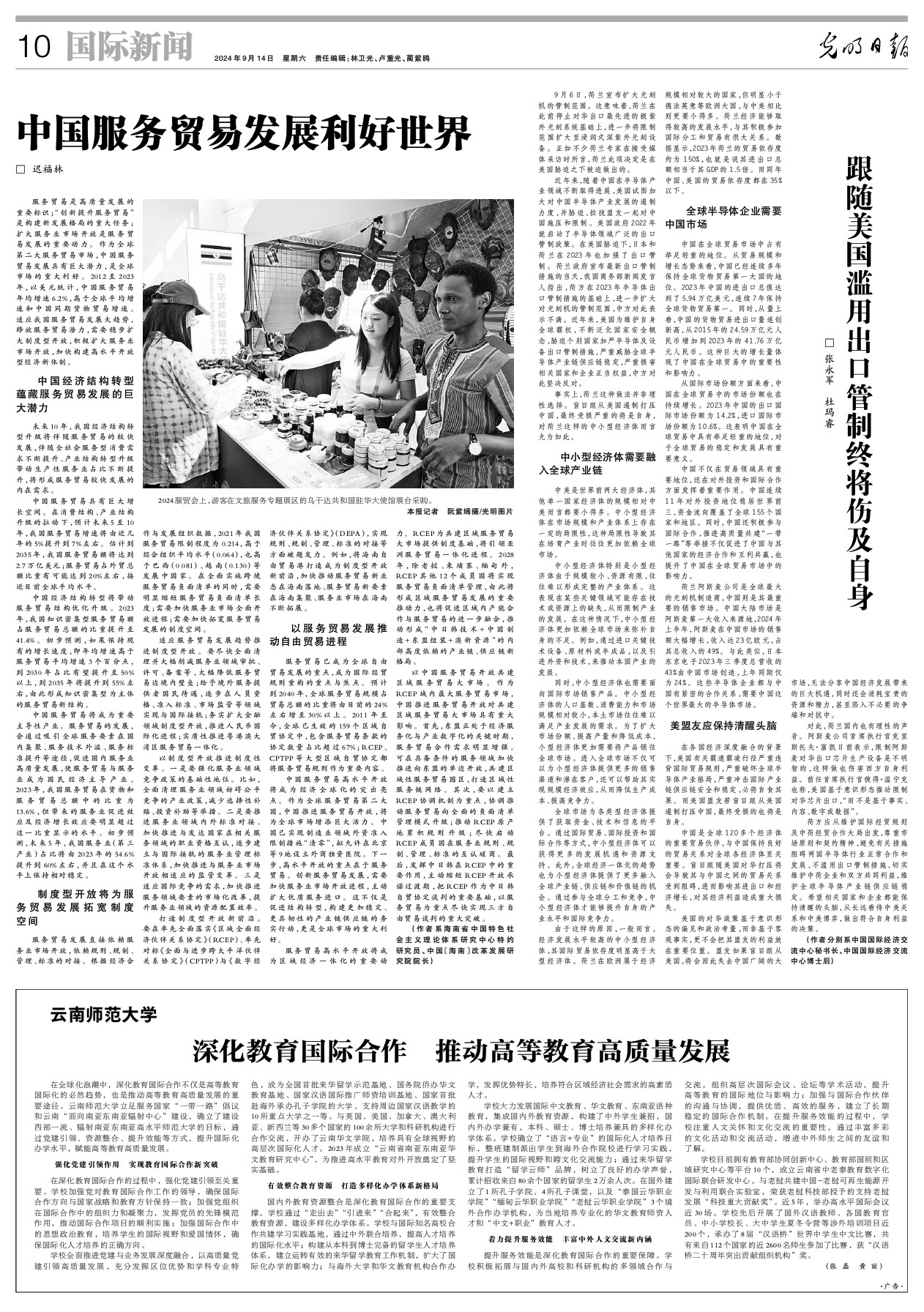 学校全面推进党建与业务发展深度融合,以高质量党建引领高质量发展,充分发挥区位优势和学科专业特色,成为全国首批来华留学示范基地、国务院侨办华文教育基地、国家汉语国际推广师资培训基地、国家首批赴海外承办孔子学院的大学、支持周边国家汉语教学的10所重点大学之一等。与英国、美国、加拿大、澳大利亚、新西兰等30多个国家的100余所大学和科研机构进行合作交流,开办了云南华文学院,培养具有全球视野的高层次国际化人才。2023年成立“云南省南亚东南亚华文教育研究中心”,为推进高水平教育对外开放奠定了坚实基础。