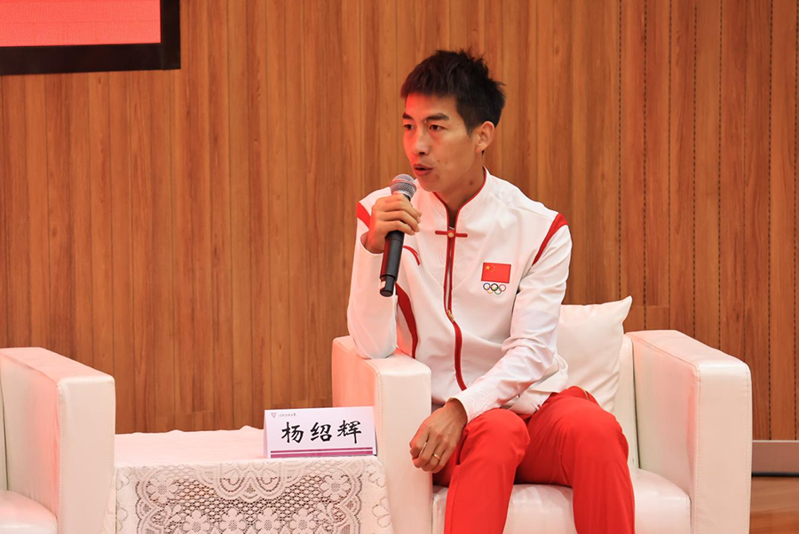 杨绍辉分享了他在奥运赛场“突破自我”的经历。即使是专业运动员,在赛场上也会遇到体能急剧下降的困境,但最难克服的还是对家的思念。“每一次外出训练基本需要三四个月甚至半年的时间,很多时候是在异国他乡过节,每逢佳节对家人的思念就更加浓烈。但是,我能做到的就是将思念化作动力,勇敢向前。”杨绍辉说,马拉松是一项考验耐力和意志力的运动,只有坚持不懈地训练,才能在比赛中取得好成绩,“马拉松让我变成了更好的自己,因热爱而拼搏,我无怨无悔。”