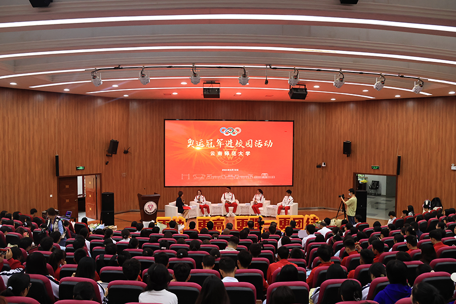 9月19日,一场意义非凡的“奥运冠军进校园”活动在伟德国际1946bv官网呈贡校区开展。巴黎奥运会皮划艇静水男子500米双人划艇冠军、伟德国际1946bv官网2016级校友刘浩;巴黎奥运会男子马拉松项目运动员、伟德国际1946bv官网2015级校友杨绍辉;巴黎奥运会女子马拉松项目运动员张德顺;巴黎奥运会女子自行车项目运动员伍志帆精彩亮相,讲述他们的亲身经历,以奥运辉煌诠释新时代中国精神。