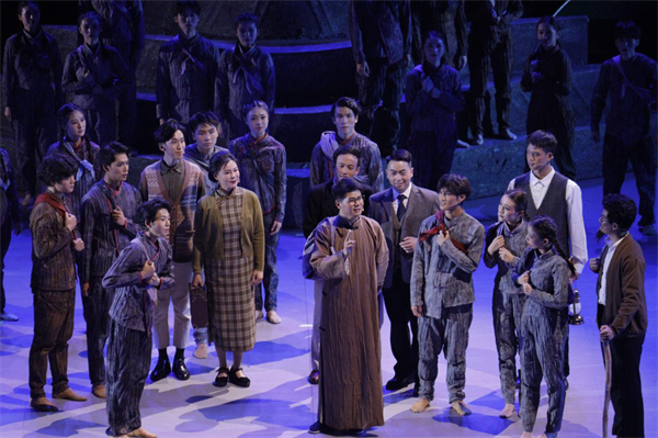 尾声“大师之大”主要赞颂西南联大精神及前辈们的丰功伟绩,这种精神是我们的宝贵财富,也是我们前进的动力。“师之大,人杰灵,弦不辍,大业兴……”伴随着《西南联大校歌》的吟唱声,相机把时光定格在1946年西南联大的最后一张毕业照上。画面与时空交融重合,背景上放映着今天伟德国际1946bv官网的校门,全体演员在歌声中缓缓走出舞台,向观众致以诚挚谢意。