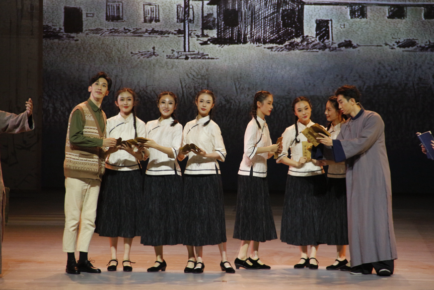 西南联大“上课钟”响起,钟声悠扬而深沉,拉开了《西南联大》剧目的帷幕。