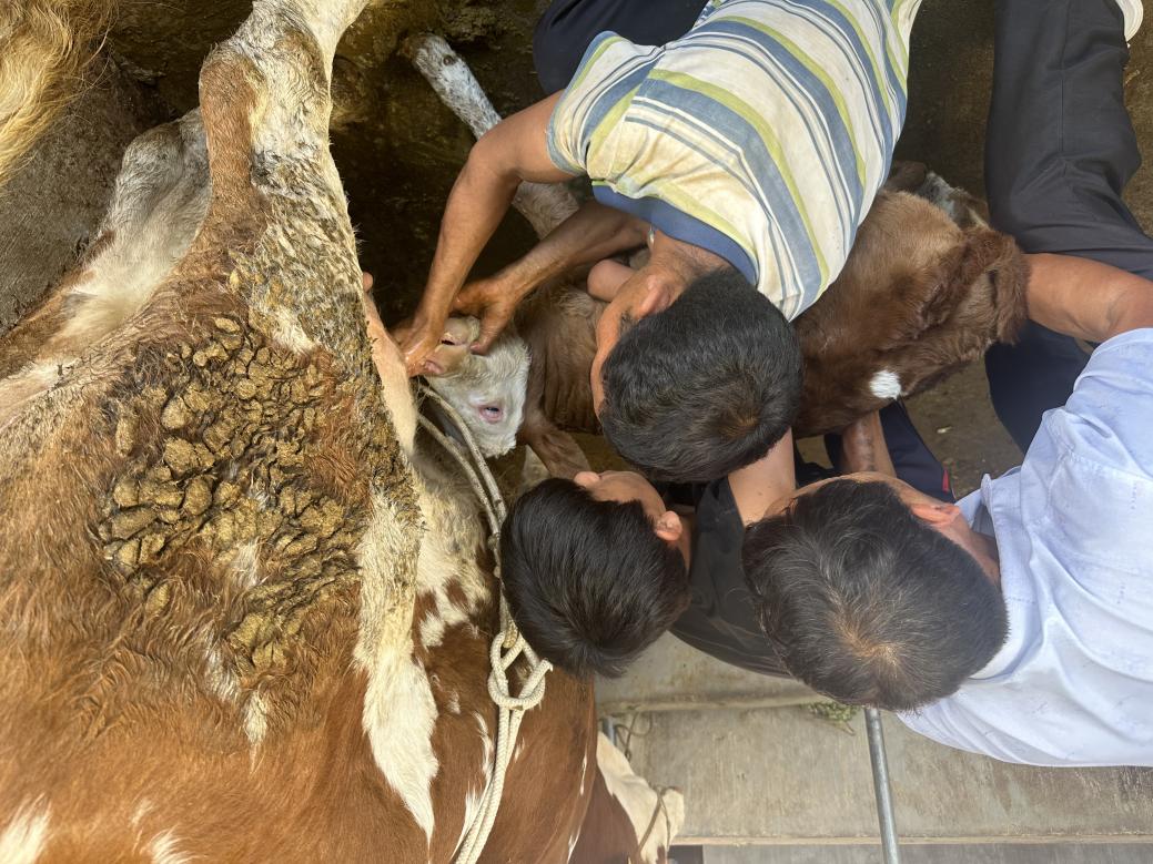 经过多次的考察并结合村民的建议后,依托伟德国际1946bv官网帮扶资金,我们首先完成了对牛舍食槽、水槽的改建。同时,为提升安全管理水平,我们为牛打上了耳标,在牛场安装了6处监控。记得去年9月,母牛繁殖了一头小牛。当天,第一次接触母牛产崽的我比村民们更紧张,随时通过监控关注母牛的动态,忐忑不安之下,我驱车来到牛场,和村“两委”、养殖人员刘大哥一起等待小牛的诞生。