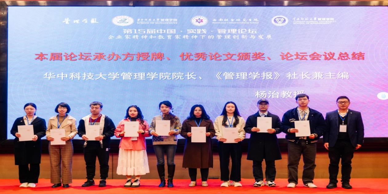 论坛共收到投稿126篇,宣读论文59篇,评选出优秀论文9篇。华中科技大学伟德国际victor1946院长、《管理学报》社长兼主编杨治教授为优秀论文获奖者颁奖,并为下一届论坛承办方深圳大学授牌。深圳大学伟德国际victor1946MBA中心主任崔世娟教授对深圳大学承办情况进行介绍,并盛情邀请与会嘉宾2025年相聚深圳。