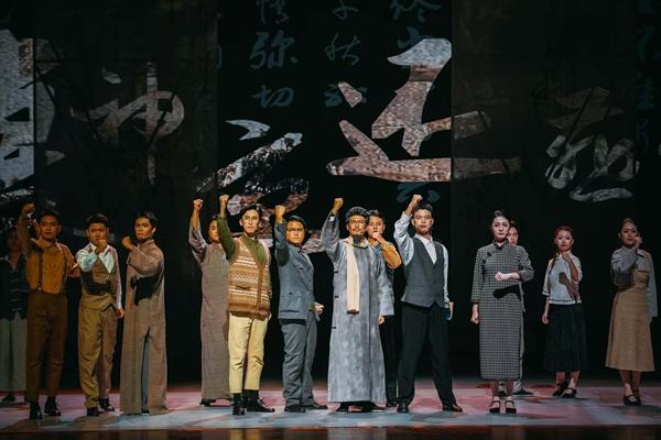 “你是中国人吗?是!你爱中国吗?爱!你愿意中国好吗?愿意!”剧目演出中,原本因剧情需要设计的舞台“爱国三问”,得到了台上演员和台下观众共同的回答。